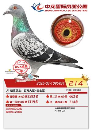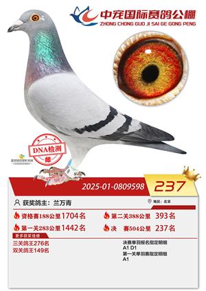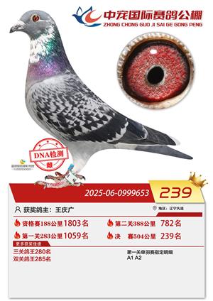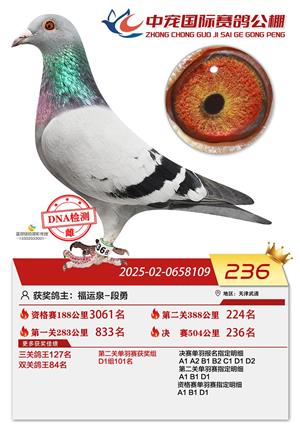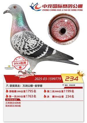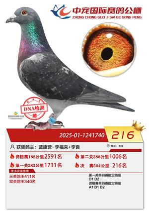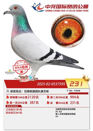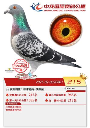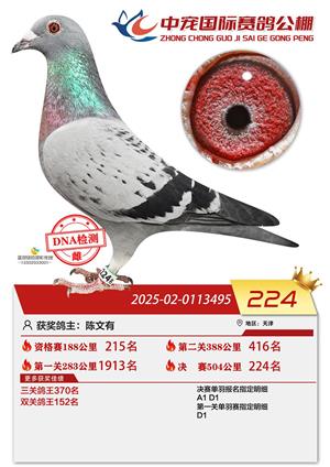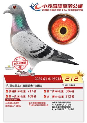 中宠国际(天津)赛鸽公棚2025年秋赛获奖鸽照片
