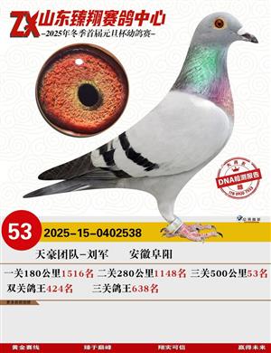 山东臻翔赛鸽中心2025年决赛获奖鸽图片