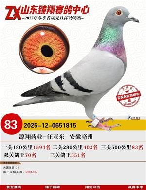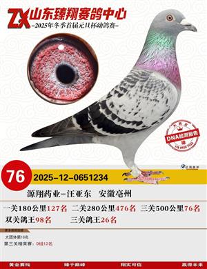 山东臻翔赛鸽中心2025年决赛获奖鸽图片