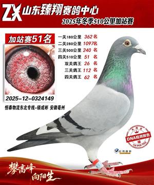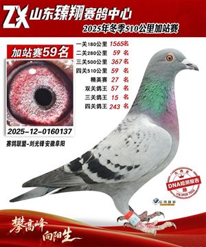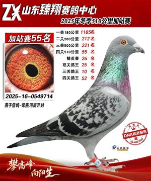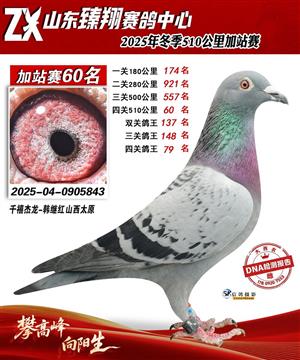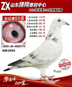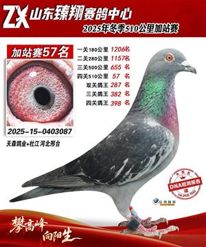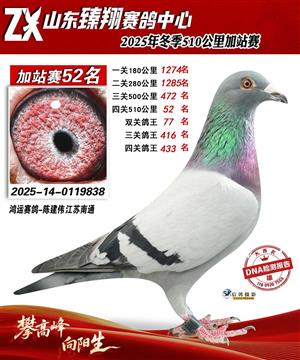 山东臻翔赛鸽中心2025年510公里加站赛获奖鸽图片
