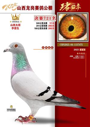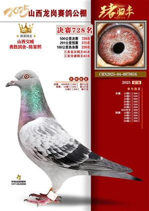 山西龙岗赛鸽公棚2025年第七届秋季大奖赛获奖鸽鉴赏