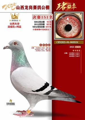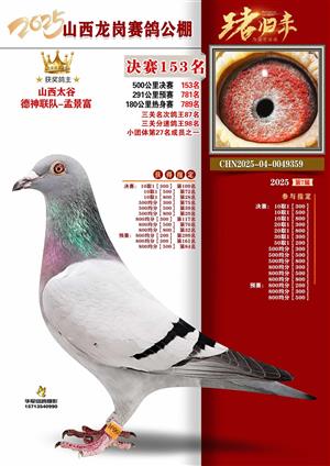 山西龙岗赛鸽公棚2025年第七届秋季大奖赛获奖鸽鉴赏