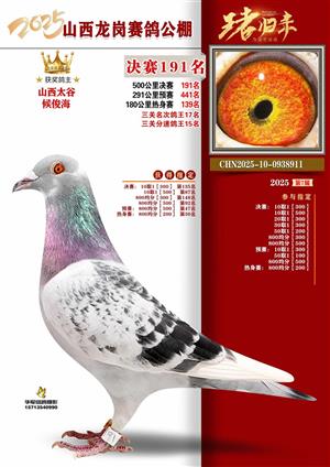 山西龙岗赛鸽公棚2025年第七届秋季大奖赛获奖鸽鉴赏