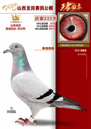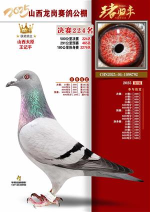 山西龙岗赛鸽公棚2025年第七届秋季大奖赛获奖鸽鉴赏