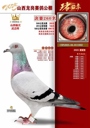 山西龙岗赛鸽公棚2025年第七届秋季大奖赛获奖鸽鉴赏